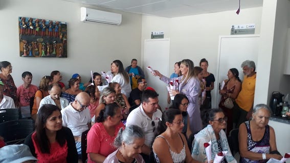 Além dos pacientes, acompanhantes e equipe de assistência, estiveram presentes ainda representantes da direção e a coordenadora do Centro de Oncologia, Dra. Guacyra Pires.