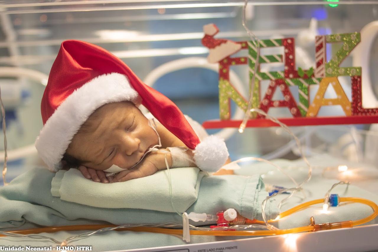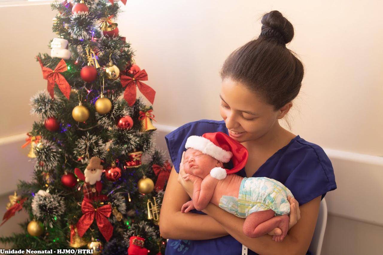 Ensaio fotográfico especial de Natal realizado pela Coordenação da Unidade Neonatal do Hospital João Murilo de Oliveira, em Vitória de Santo Antão, com os bebês estáveis da Unidade e autorização das mães.