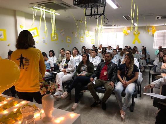Em alusão ao Setembro Amarelo, mês de prevenção do suicídio, o Hospital Mestre Vitalino (HMV) preparou nos últimos dois dias (18 e 19) uma programação voltada para a conscientização dos colaboradores. Na quarta (18) foi realizada uma palestra com Erika Albuquerque, voluntária do Centro de Valorização da Vida (CVV) com o tema “Prevenção ao Suicídio e Valorização a Vida”. O momento lotou o auditório do HMV e gerou bastante reflexão sobre a temática.