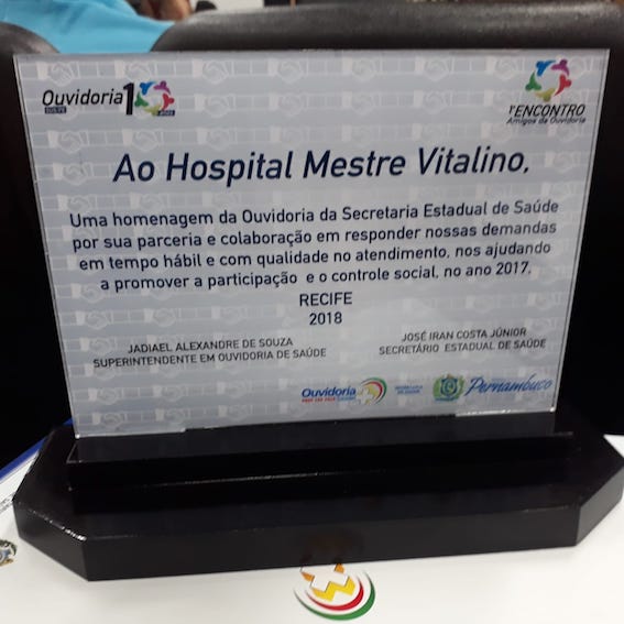 Na ocasião o HMV foi condecorado pela sua qualidade no serviço de ouvidoria no ano de 2017. A ouvidoria auxilia a participação da população na melhoria da assistência oferecida pelas unidades.