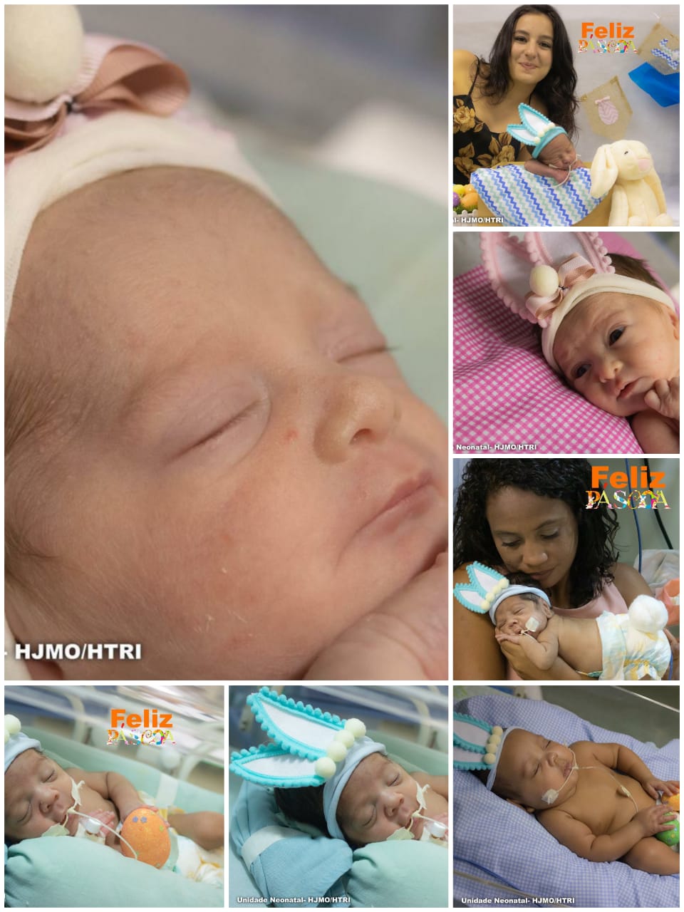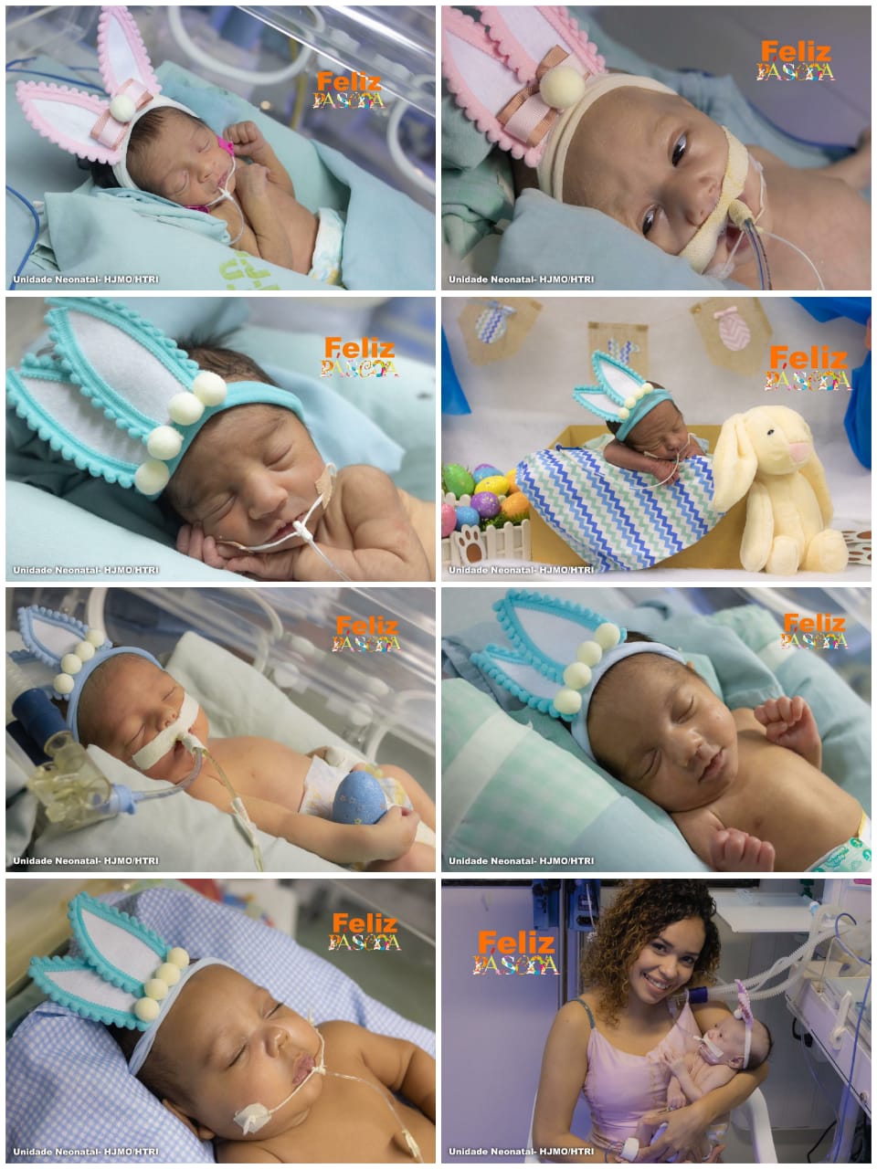 É tempo de acreditar no amanhã! O domingo de Páscoa ganhou um sabor mais doce na vida dos familiares dos bebês que estão internados na Unidade de Terapia Intensiva (UTI) e Unidade de Cuidados Intermediários (UCI) Neonatais, do Hospital João Murilo de Oliveira, em Vitória de Santo Antão. Através do olhar humanizado da coordenadora do setor, Cicilia Andrade, um ensaio especial foi realizado com alguns desses bebês, que foram caracterizados para a data. O ensaio, além de encantar a todos com tanta delicadeza, ajuda familiares e bebês a terem mais um momento especial em um novo ciclo, que está apenas começando.