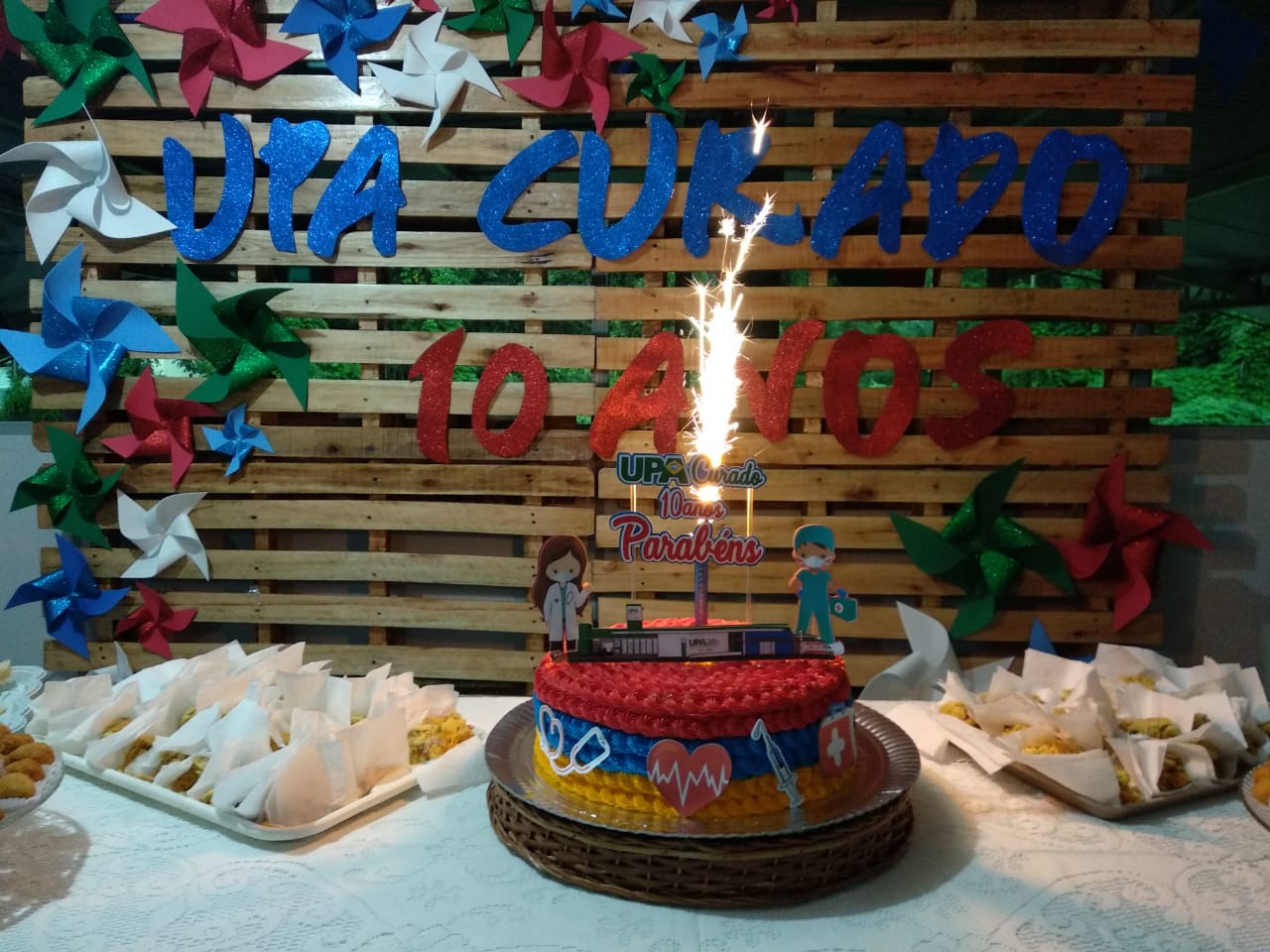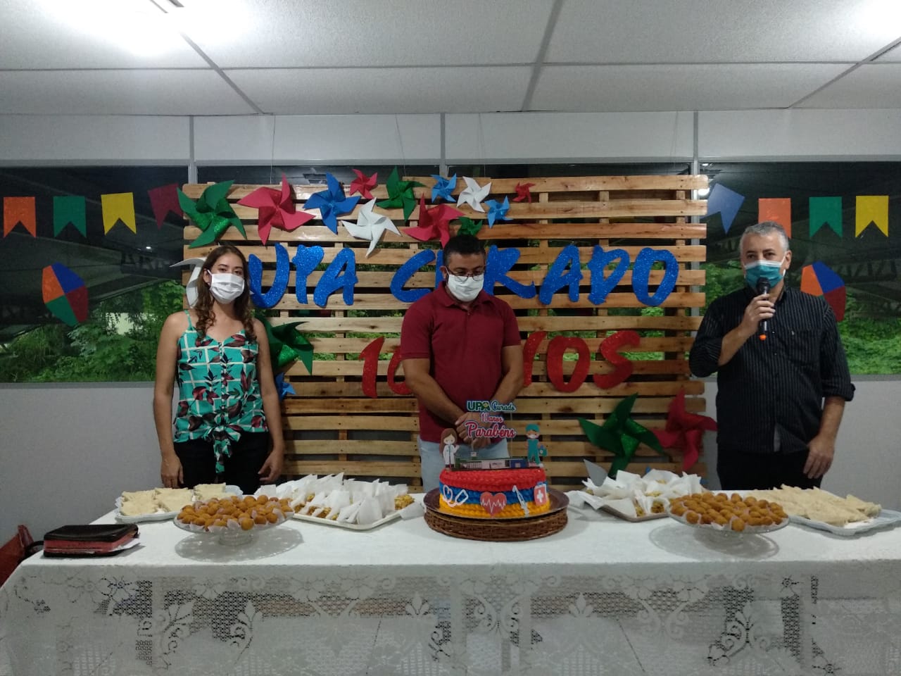 A Unidade de Pronto Atendimento (UPA) Médico Fernando de Lacerda, localizada no bairro do Curado II, completou, no último dia 10 de junho, 10 anos de prestação de serviços de saúde para a população. Esse ano, a celebração da data chegou em meio à pandemia do novo coronavírus, não dando a oportunidade para os abraços, mas abrindo espaço para a gratidão, fé e esperança de que os dias melhores estão por vir. A data foi marcada por um café da manhã e almoço especiais, seguida pelas palavras do palestrante Tony Cavalcanti, da Paróquia São Padro, que levou conforto para os profissionais. “É difícil falar nesse momento de perda, mas Deus está no controle de tudo. Aprendemos com a pandemia, que não existe diferença entre, rico ou pobre, negro ou branco, a doença levou todos para o mesmo lugar. Nós somos uma única pessoa, não existe ninguém melhor”, explicou o palestrante. Ao final da tarde, funcionários da Unidade cantaram parabéns.