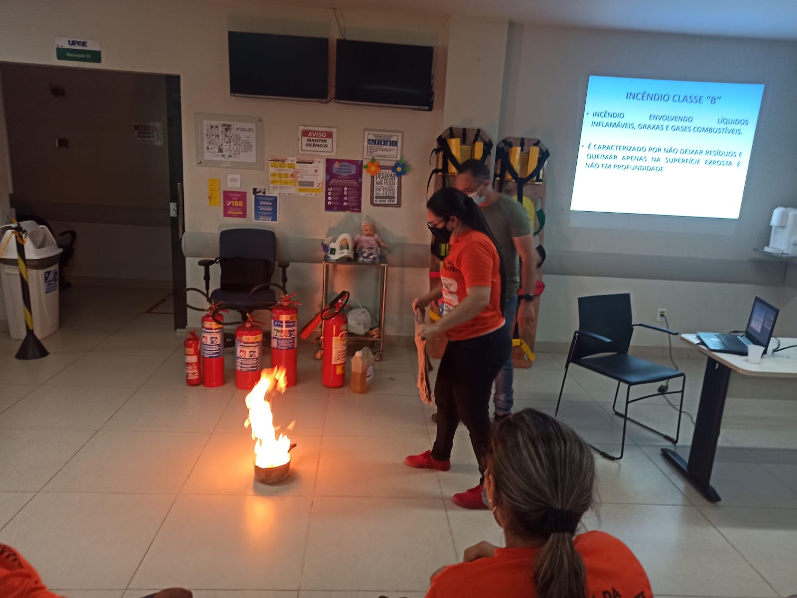 Profissionais da Unidade Pernambucana de Atenção Especializada (UPAE) Dr. José Alves de Carvalho Nunes, em Serra Talhada, participaram do treinamento para a brigada de incêndio.